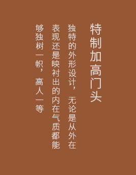 秉承中國“藏風聚!钡膫鹘y理念,研發出特殊的設計工藝,無需更改門洞尺寸,加高門框處理,添財納吉祥、五福入豪門
